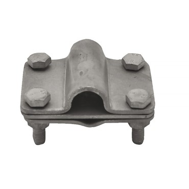 Hromosvodová svorka pro připojení kruhového vodiče průměru 8–10 mm k jímací tyči průměru 16 mm, 4× M8.