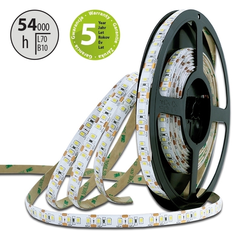 LED pásek SMD2835, neutrální bílá (4200K), 4,8W, 60LED, 430lm/m, CRI>90, segment 50mm, 3LED/segment, IP20, DC 12V, životnost 54000h, šíře 8mm, bílý PCB pásek, max. délka pásku při jednostranném zapojení: 5m, opatřen samolepící páskou 3M, UV stabilní.