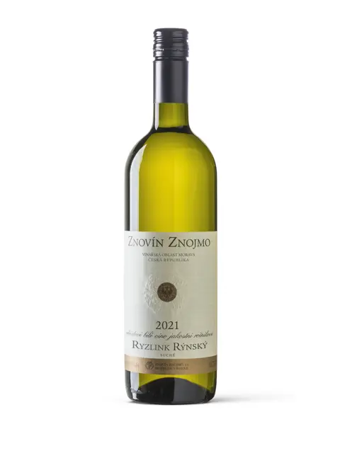 Ryzlink rýnský 2021 – jakostní víno (Znovín Znojmo) je suché bílé víno s aromatem citrusových plodů, křupavého angreštu a lučních květin. V chuti dominuje zralé zahradní ovoce — broskve, meruňky a ryngle — doplněné svěží kyselinou a dlouhou čistou dochutí. Příjemná struktura a vyváženost zbytkového cukru 6,3 g/l s kyselinami cca 7,4 g/l při alkoholu 12 % obj. Víno je ideální k rybě, kuřecímu masu nebo lehkým těstovinovým pokrmům a má archivní potenciál přibližně 4–6 let.