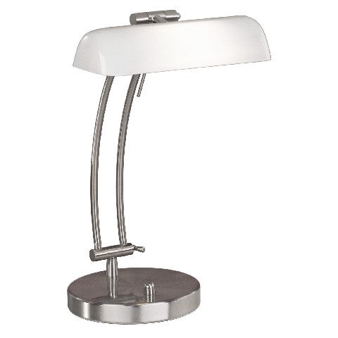 Stolní lampička v elegantním provedení. Kombinace chromového kovu a světlého opálového skla je velmi působivá. Lampička se hodí na noční stolky nebo lze postavit na komodu třeba v obýváku nebo předsíni.