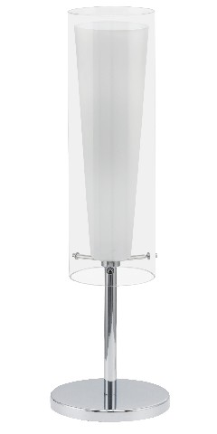 Stolní lampa PINTO je vyrobena z válcového stínidla z čirého skla a kovového podstavce v chromové barvě. Vnitřní, kuželovité skleněné stínidlo v opálovém matu podtrhuje domácký charakter lampy. Pohodlné zapínání a vypínání je možné pomocí vypínače na kabelu. Stolní lampu lze díky svému nadčasovému designu kombinovat téměř s jakýmkoliv stylem interiéru a nabízí moderní osvětlení v ložnici na nočním stolku, obývacím pokoji nebo předsíni. Lampa není součástí dodávky. Lampa je vhodná pro jakoukoli žárovku s paticí E27.