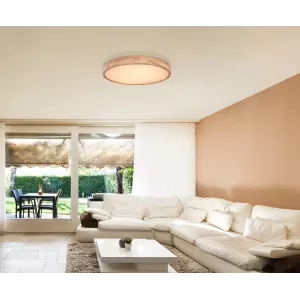 Stropní svítidlo (Ø 60 cm) z kovu v dřevěném designu s plastovým opálovým difuzorem, zaujme svým designem. Svítí intenzitou 240 - 3500 lumenů. Teplota světla se dá regulovat od 2700 do 6500 Kelvinů pomocí dálkového ovladače. Svítidlo má měnič barev s možností fixace barev. Svítidlo je velmi univerzální a lze kombinovat s modely ze stejné série pro doplnění vzhledu vašeho interiéru.