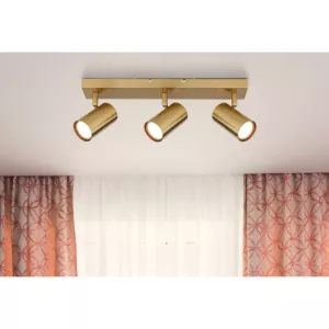 Stropní svítidlo je vyrobeno z broušeného kovu zlaté barvy. S objímkami GU10 (max.25W) máte možnost vybrat si vlastní světelný zdroj a tím si určit intenzitu a barvu světla. Žárovky nejsou součástí balení. Doporučujeme LED zdroje pro jejich úsporu energie a dlouhou životnost. Díky jedinečné kombinaci moderního designu a materiálů bude toto svítidlo ve vaší domácnosti zaručeně poutat pozornost.
