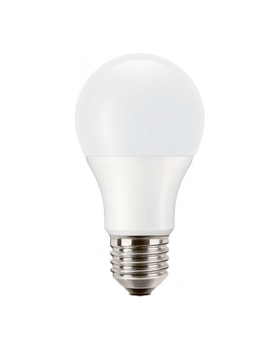 LED žárovka PILA s paticí E27 v tradičním tvaru baňky A60 v matné bílé variantě FR o příkonu 10,5 W, která nahrazuje klasickou 75 W žárovku, svítí příjemně rozptýleným úsporným teplým bílým světlem 2700 K se světelným tokem 1055 lm.