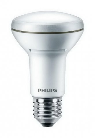 LED žárovka Philips CorePro spotMV s paticí E27 ve tvaru baňky R63 v bílé variantě o příkonu 2,7 W, která nahrazuje klasickou 40 W žárovku, svítí úsporným teplým bílým světlem 2700 K, rozptýleným v úhlu 36°. Její světelný tok je 210 lm.