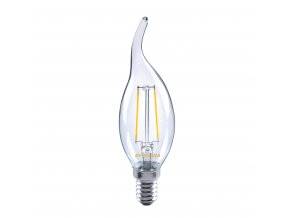 LED žárovka Philips filament s paticí E14 ve svíčkovém tvaru baňky BA35 v průhledné variantě o příkonu 2 W, která nahrazuje klasickou 25 W žárovku, svítí příjemně rozptýleným úsporným teplým bílým světlem 2700 K se světelným tokem 250 lm.