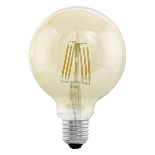 Dekorativní LED žárovka EGLO s paticí E27 v kulovitém tvaru baňky G95 v průhledné variantě o příkonu 4 W, svítí velmi teplým úsporným bílým světlem 2200 K se světelným tokem 330 lm.
