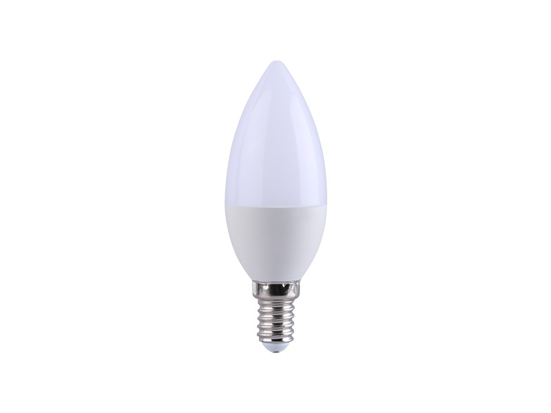 LED žárovka PANLUX s paticí E14 ve svíčkovém tvaru baňky v matné bílé variantě o příkonu 5,5 W, která nahrazuje klasickou 50 W žárovku, svítí úsporným studeným bílým světlem 5000 K.